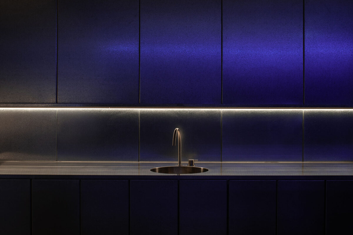 Lighting quality is integral to designing an ideal working environment. We collaborated with lighting designers Alison Loader and LuxFX to design and integrate an innovative lighting experience. The feature ceiling is an example of merging design and function, as the concealed lighting determines the interior ambiance whilst housing building services and acoustically lining the exposed slab ceiling. Using an App, we can create a series of scenes throughout the day by controlling the luminaires in each sub-space of the studio to reflect our dynamic practice. The colour managed lighting combined with the physical surfaces provides an ideal backdrop for our material research and presentation between staff and clients.